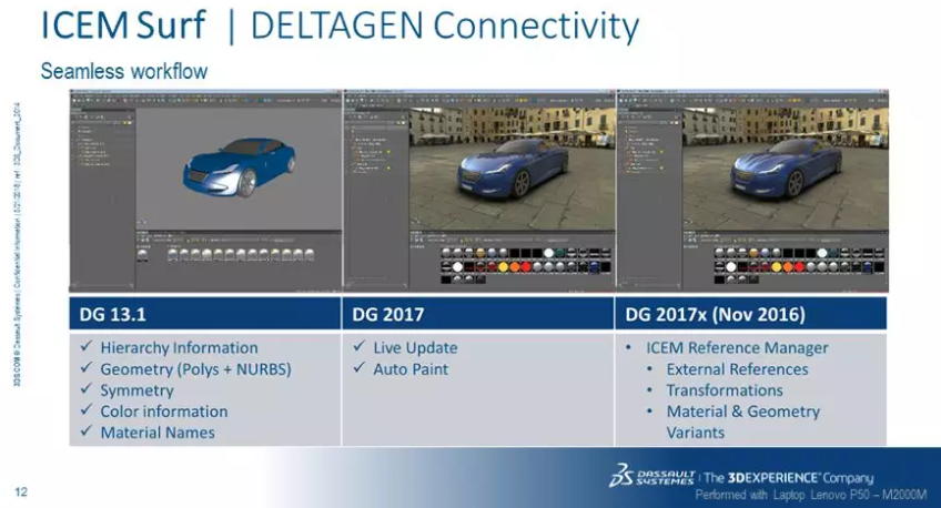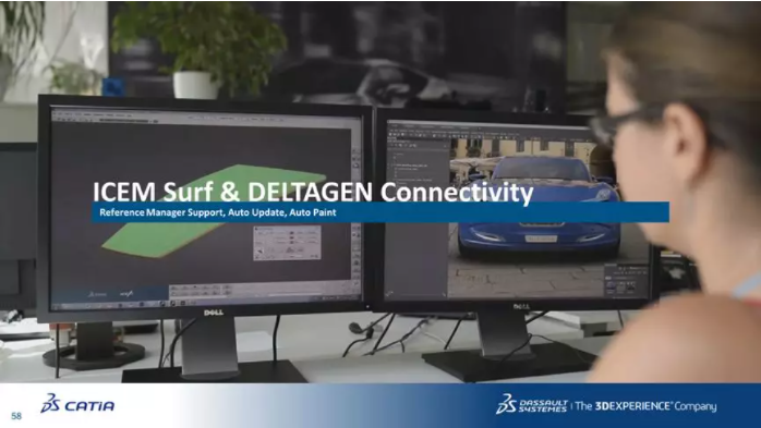 ICEM Surf在之前的几个版本迭代中为设计师提供了针对3DEXCITE Deltagen动态连接性的持续优化,以提升可视化的体验。 得益于“自动喷漆”技术的加持, Deltagen中现已加入了ICEM Surf Reference manager工具、嵌入材质以及几何显示变体等实用功能。