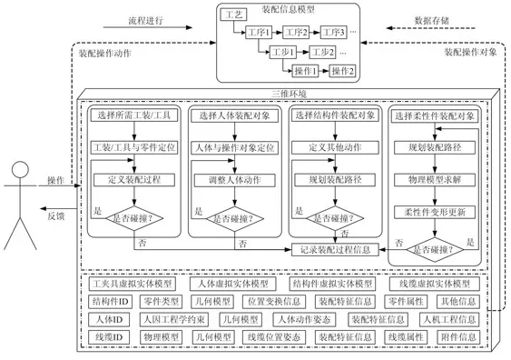 仿真过程以流程为中心、装配信息模型为基础,进行装配过程数据的存储。在三维环境下,装配仿真过程主要包含如下4个部分。