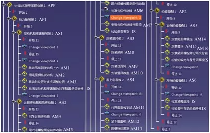 在基于DELMIA的三维装配工艺规划与仿真系统方面,冷毅勋等详细论述了基于DELMIA的三维工艺设计与仿真流程,并应用3DVIA Composer软件完成了可视化装配文档的编制;刘阳等将工艺节点与相关分段零部件节点、设备资源节点进行关联,规划分段产品和工艺节点的属性,完成分段装配工艺模型的构建,实现了对双层分段的具体装配顺序和路径的规划,基于DELMIA和3DVIA Composer实现了三维装配工艺文档的生成;冯廷廷根据产品模型借助DELMIA软件系统DPE模块及相关二次开发定制装配工艺模板、规划装配工艺,并借助3DVIAComposer软件进行装配仿真,开发轻量化模型的按钮,将其集成到AO文档中,形成生动直观的三维AO,有效指导工人进行现场操作;屈力刚等采用CATIA/CAA开发技术获取工艺信息,利用3DVIA Composer二次开发轻量化工艺模型,同时采用XML存储获取的工艺信息,并通过可视化浏览器实现了基于三维模型的工艺信息显示。