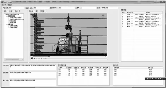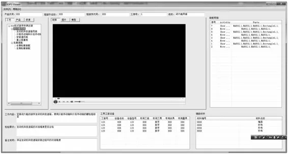 缺少典型示教的三维动态装配过程不便于装配工人使用及理解,本文将设计完成的所有工艺信息采用统一的三维工艺浏览器进行查看,使其具有真正的现场指导意义。设计采用基于VS 2005、3DXML插件、WindowsMedia Player插件集成的方式。三维工艺浏览器的布局如图4所示。