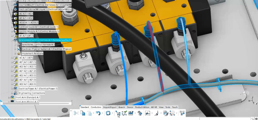 同步电气原理图设计至电气3D设计,提升电气系统质量和数据连续性,优化电气3D线束通道/线缆通道的精度。