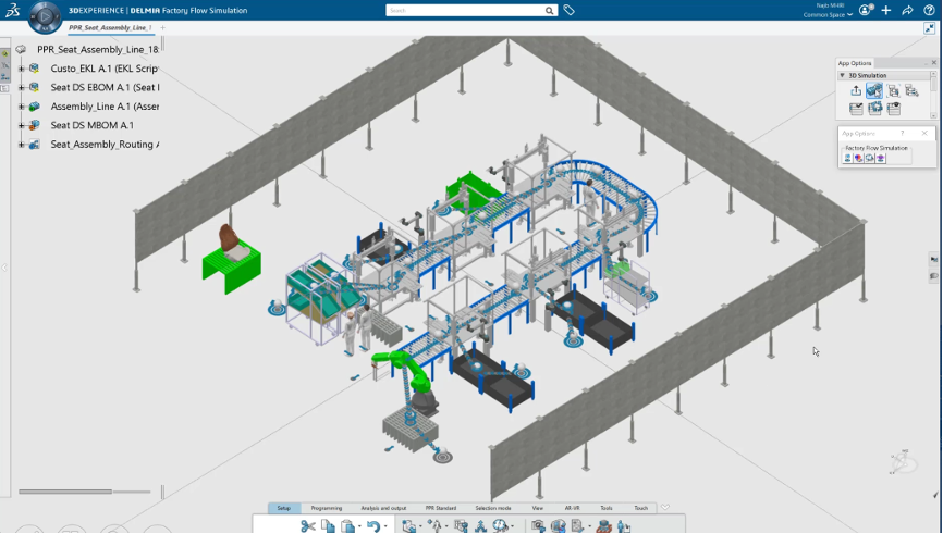 应用3DEXPERIENCE平台装配模块,对第三方CAD模型进行装配设计; 快速打开产线、工厂等总装大装配模型,进行详细设计、轻量化查看和漫游; 生成总装模型数字样机,对数字样机进行协同审查;