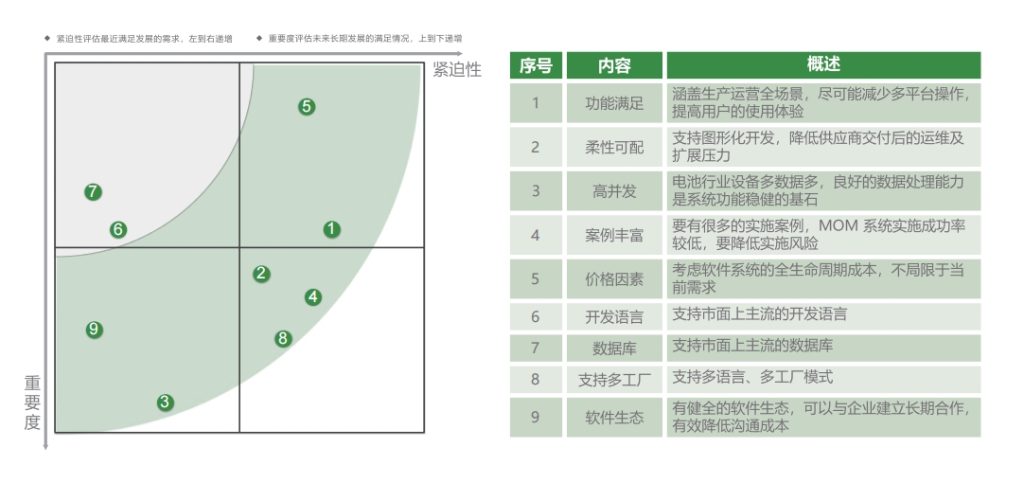 新能源行业如今已经从关注MOM系统功能向关注MOM系统架构转变,而数据处理能力、价值生态体系是该行业考虑的重要要素。