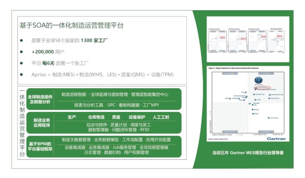 Apriso的大统一、全贯通;先进架构、高柔性;多工厂管理架构的优势,为新能源行业创造更高价值。​