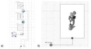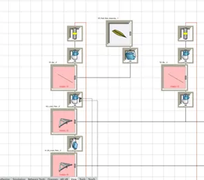 此图像代表 Dymola 运动模型的标准设置。此设置包括装配体每个零件的单独模型和连接的不同模型,用于模拟零件之间的机械连接。此外,还包括一个全局主体组件,该组件通过固定旋转锚定到“世界”组件。