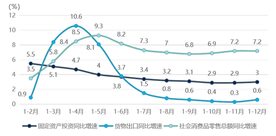 - 2023年1-12月我国固定资产投资、消费、出口情况