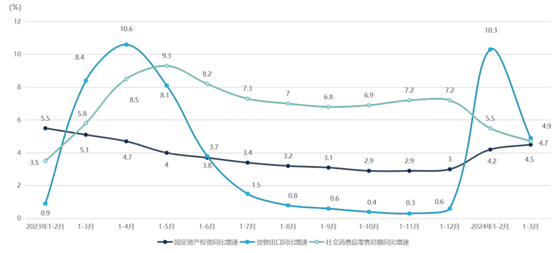 ● 2024年1-3月我国固定资产投资、消费、出口情况