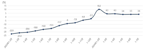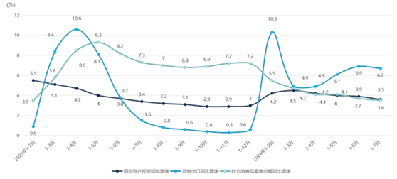 ● 2024年1-7月我国固定资产投资、消费、出口情况