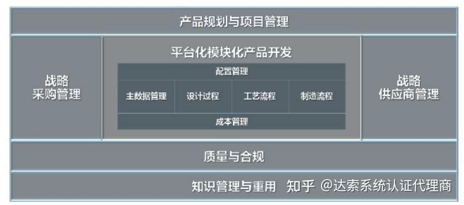前面已介绍达索Enovia系统能够针对新产品立项、 研发、 售后等全生命周期进行管理。对应产品研发业务过程, 从项目全生命周期管理来看, 包括:新产品概念提出、 产品规划、 设计开发、 生产、 上市、 售后服务、 退出市场等典型项目管理环节; 从新产品研发环节来看, 包括: 产品数据管理、 工艺管理、 配置管理和成本管理; 从新产品研制战略来看, 包括: 市场战略分析、 配套零部件厂商管理和采购过程管理; 从质量控制角度看, 将产品的质量与合规控制融入到新产品研发的全生命周期, 并进行有效的管理; 从知识管理与重用角度看, 在产品研制过程中, 能够有效应用已有的研发知识, 并能够将新产品研制的知识沉淀为新的研发知识, 并进行有效管理。