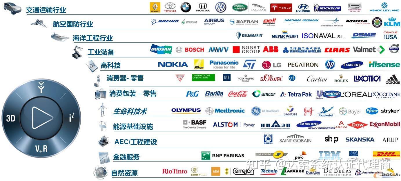 达索系统与竞争对手相比,在航空、汽车、船舶、电子科技等工业品领域占有绝对优势,在11个细分行业中,非常著名的企业均有达索系统的成功客户。