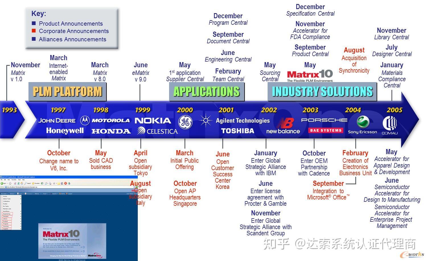 达索系统公司2006年花了4.08亿美元收购MatrixOne公司。达索V6平台以MatrixOne功能为主体功能,融合了Smarteam以及VPM的优秀功能,重新打造的达索析统的全新一代的平台产品。