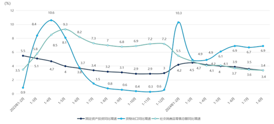 ● 2024年1-8月我国固定资产投资、消费、出口情况