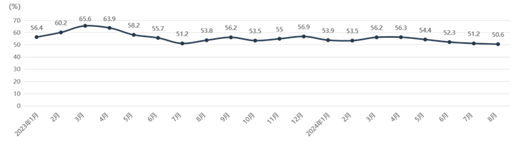 8月建筑业商务活动指数(PMI)为50.6%,比上月下降0.6个百分点。