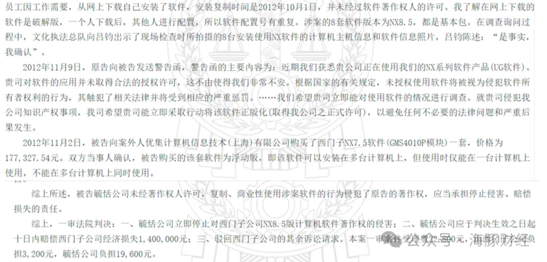 毓恬冠佳侵犯同业公司专利权,多次使用盗版软件,这些行为损害了其他公司的合法权益,扰乱了市场秩序,属于严重的不正当竞争行为。这样一家不诚信的企业,是否会通过IPO审核呢? 2024年9月30日,上海毓恬冠佳科技股份有限公司上市状态变更为“中止”。通常来说,IPO状态中止代表企业申请材料不符合要求或存在问题,需要企业修改或补充其他材料,常见原因包括申请文件不全、发行人主体资格存疑、信息披露的真实性、准确性、完整性存在质疑等。在此期间,交易所暂停审核申请材料。 上海毓恬冠佳科技股份有限公司(简称“毓恬冠佳”)于2024年8月23日过会。本次IPO毓恬冠佳拟发行不超过21958700股,不低于本次公开发行后公司总股本的25%。此次拟投入募集资金5.75亿元,用于毓恬冠佳新厂房、汽车车顶系统及运动部件新技术研发项目、汽车电子研发建设项目和补充流动资金项目(7500万元)。由此计算,毓恬冠佳IPO发行估值不低于23亿元。 值得注意的是,毓恬冠佳不仅在其主营业务领域因为侵权被起诉,在办公管理软件使用上,也公然使用盗版软件,侵害至少两家公司专利,被起诉赔偿超千万元。 司法判决显示,2016年,西门子产品生命周期管理软件有限公司以侵害计算机软件著作权为由将毓恬冠佳告上法庭。判决书显示,2012年11月2日,毓恬冠佳花费17.7万元购买了一套NX7.5软件(GMS4010P模块)一套。销售商告知毓恬冠佳,该软件可以安装在多台计算机上,但使用时仅能在一台计算机上使用,不能在多台计算机上同时使用。然而,就在购买这套软件前的2012年10月1日,毓恬冠佳在其办公室8台电脑上安装了8套盗版NX8.5软件。 2012年11月9日,西门子向毓恬冠佳发送警告函,要求后者立即停止侵权其知识产权行为,停止使用盗版软件,并购买正版产品。但毓恬冠佳置之不理。随后,西门子将毓恬冠佳告上法庭。一审法院判决结果为,毓恬冠佳立即停止对西门子公司NX8.5版计算机软件著作权的侵害;毓恬冠佳赔偿西门子公司经济损失140万元。 不过,毓恬冠佳并未吸取教训,在公司办公软件上继续使用盗版产品。 2022年10月8日,达索系统Simulia公司因毓恬冠佳未经许可使用其拥有的ABAQUS系列计算机软件而向上海知识产权法院申请诉前保全。上海知识产权法院出具《民事裁定书》,对毓恬冠佳的计算机及其他设备上复制、安装及使用的ABAQUS系列计算机软件及该等计算机软件的相关信息进行证据保全。 2023年4月,毓恬冠佳与达索集团达成调解协议。毓恬冠佳自调解协议签订之日起停止使用侵权软件,与达索集团的授权软件经销商上海耀唐科技有限公司签署软件采购合同,总费用合计14994180.18元。 毓恬冠佳侵犯同业公司专利权,频频使用盗版软件,这些行为损害了其他公司的合法权益,扰乱了市场秩序,属于严重的不正当竞争行为。这样一家不诚信和违法经营的企业,是否应该通过IPO审核呢? 标签: 万元上海公司西门子计算机软件文章导航历史的文章历史的文章:线上研讨会 | 达索系统赋能新电池产业链数字仿真一体化协同解决方案未来的文章未来的文章:阿尔特汽车未授权使用工业设计软件CATIA,一审判赔2008万!达索系统亮相第三十一届中国汽车工程学会年会暨展览会2024年11月18日重罚百万!中山鑫海公司因盗版CATIA软件被判赔312万人民币2024年10月15日重罚72万美金!美国堪萨斯两公司(Lightning Aerospace和Fly Manufacturing)盗版CATIA软件被判赔偿2024年10月15日迈瑞医疗子公司因侵权被判赔偿150万元2024年10月15日法院判决同捷公司赔偿达索费用共计人民币1505万元!2024年10月12日重罚900万!上海知豆电动车盗版CATIA软件2024年10月12日