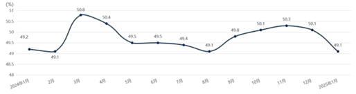 - 2025年1月我国制造业与建筑业采购经理指数运行情况