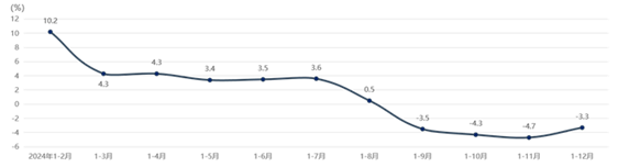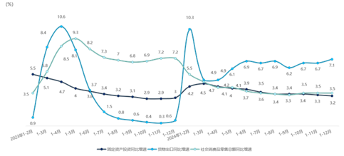 - 2024年1-12月我国固定资产投资、消费、出口情况
