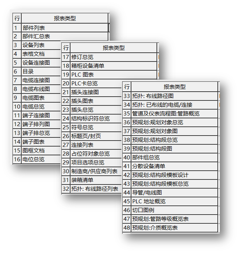 Eplan的报表系统支持多种工程场景,包括但不限于: