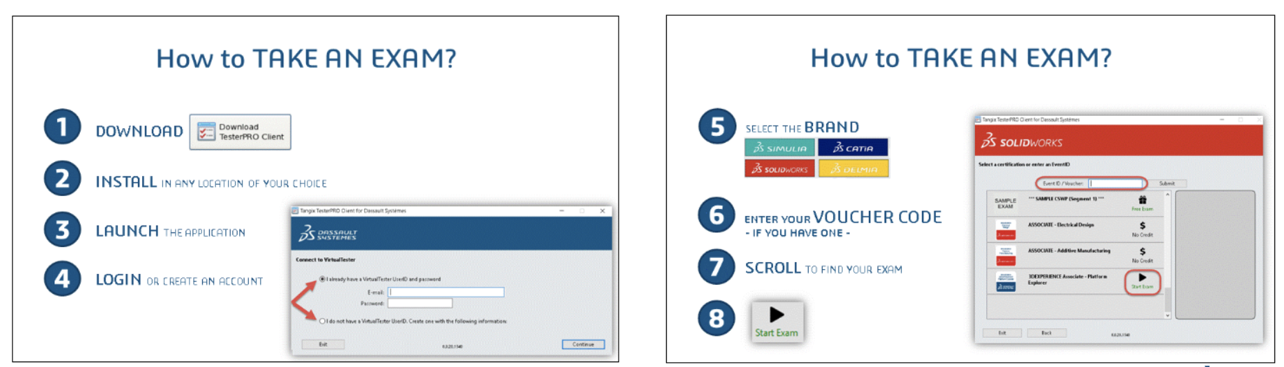 初级考试通过3DEXPERIENCE©教育空间在线完成。需要购买考试码参加考试。