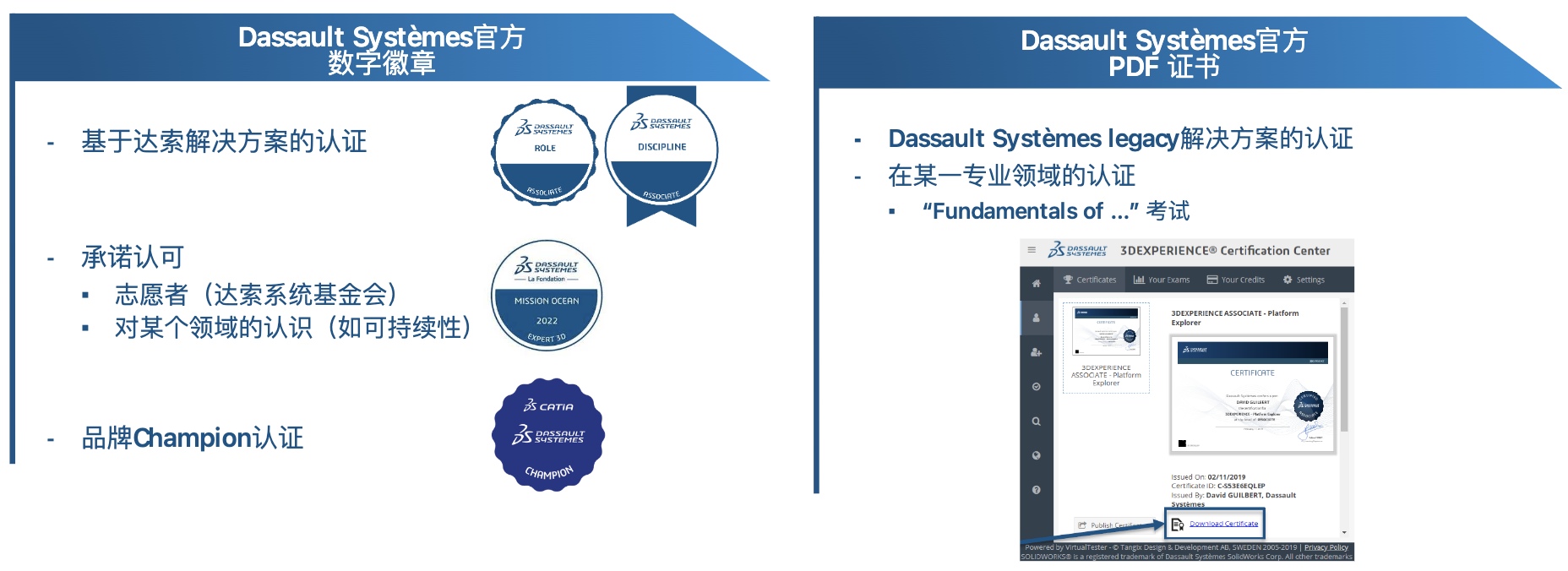 成功通过3DE考试将获得可分享至社交媒体的数字徽章;其他考试通过后系统将自动生成电子证书。