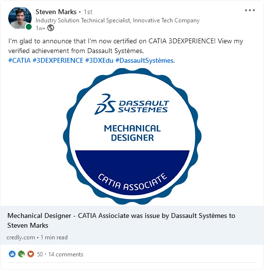 作为经过认证的 CATIA 专家,您可以通过验证您的高级专业知识水平来提高您的竞争优势。该认证表明您在利用 CATIA 解决方案的最佳结果方面拥有丰富的知识和实践经验。