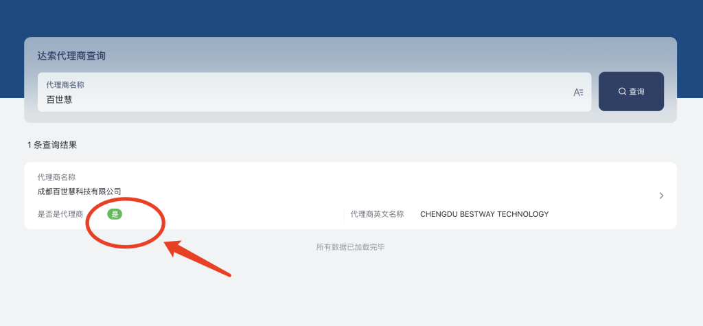 提交成功后,您将立即可以自主查询获得官方授权代理商名单