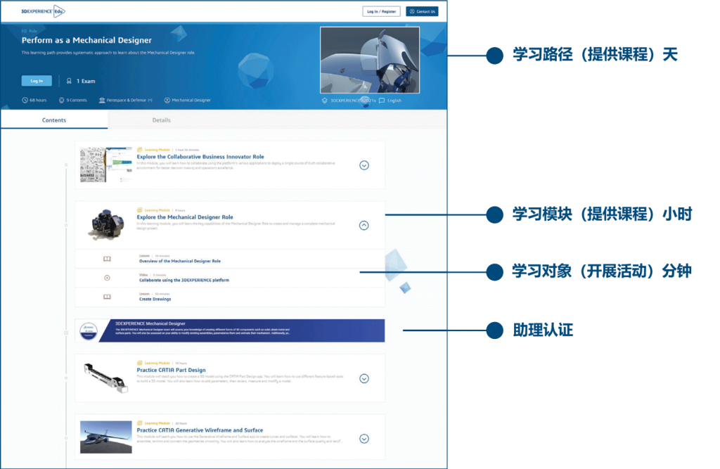 为了帮助您保持领先地位,我们直接通过浏览器为您提供最新的行业和 3DEXPERIENCE 专业知识。在每个图书馆中,通过“探索”学习模块发现 3DEXPERIENCE 角色的价值,通过“实践”深入课程变得精通,通过验证您的技能的证书获得认可。
