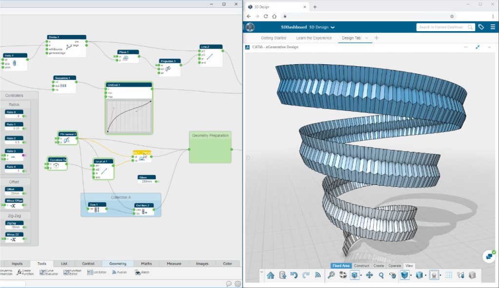 新的、直观的、智能的方法,让有创造力的人,在建筑、设计/造型、工程中,可以进行快速设计,探索和验证复杂的变化、重复却无规律的外形和特征。通过3D体验平台中丰富的角色组合,所有被创建的几何元素都可被用于详细设计和制造。