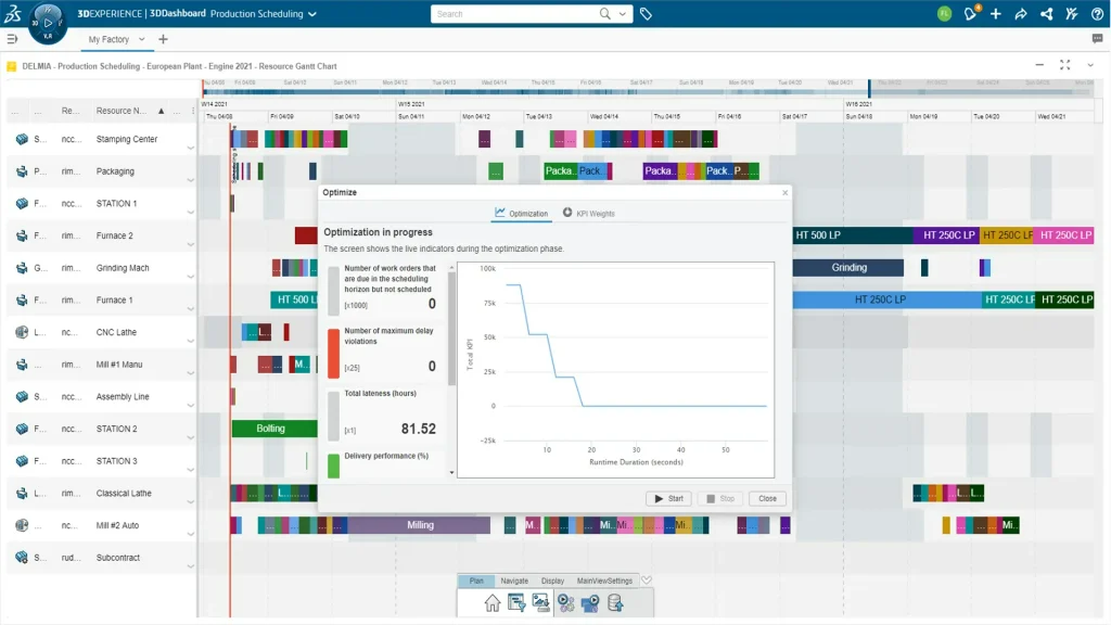 DELMIA Ortems Production Scheduler 通过改进生产波动和需求变化期间的控制和响应能力来提高敏捷性。