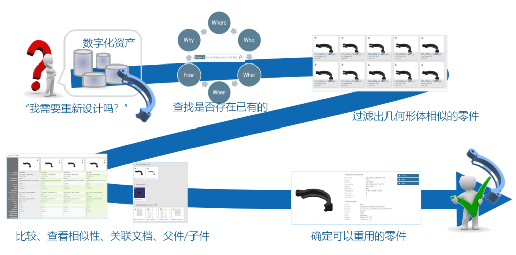 物料成本是企业成本中非常重要的部分,虽然企业实施了PLM系统,但对零部件的查询仍然非常困难,工程人员在接到订单后往往重复进行相似的设计,相似的审查,相似的验证,制作相似的工装模具、编制相似的工艺路线,采购相似的物料。这里面有很多重复性工作,不但消耗了大量的时间、人力、材料成本,同时又不断扩大企业库存,给企业运营带来巨大的压力。