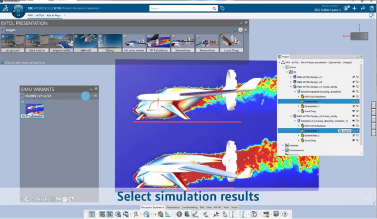 CATIA Product Perception Experience则增加了基于配置创建预定义三维场景的功能,以便生成直观的3D交互式演示——用于头脑风暴、评审和体验。