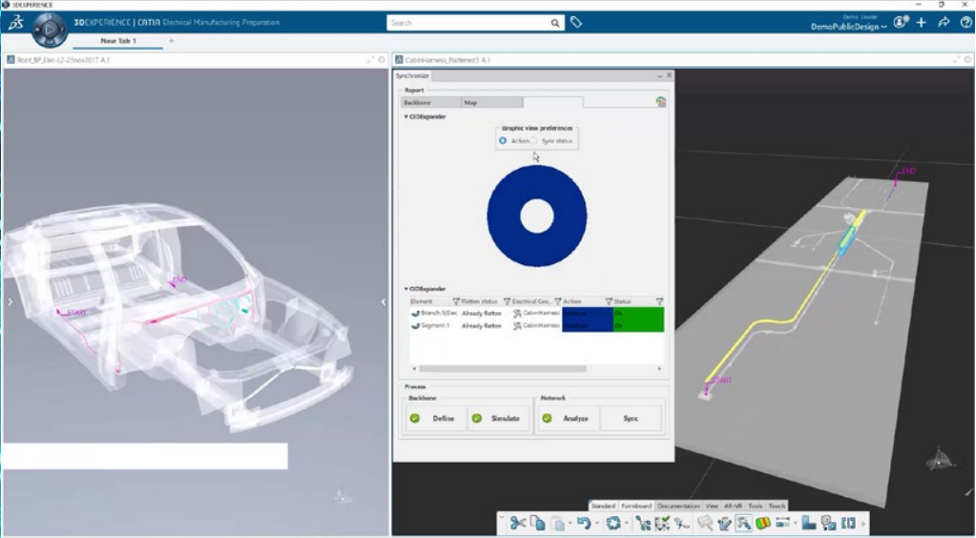 此外,在3D线束设计变更后,3D线束和2D线束展平图之间增强的同步功能可以支持更快地更新制造文档。这种新的“半自动更新”能保持三维线束的“骨架形状”,防止对线束的其余部分产生影响。当然,更新后仍然可以在任何设备上从最新的2D线束一键更新制造文档。