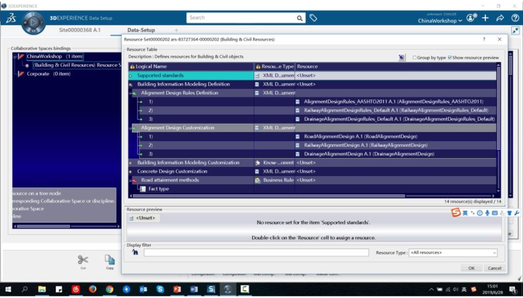 在19x中,进一步将线路功能细分为道路线路设计和铁路线路设计(Drainage Alignment排水线路设计也将随后登场),并可在后台Data Setup中对其进行相应的道路设计规则资源配置。用户可将3DE安装包中内置的设计规则进行进一步修改,然后加入到资源配置中,行成专属线路设计规则。