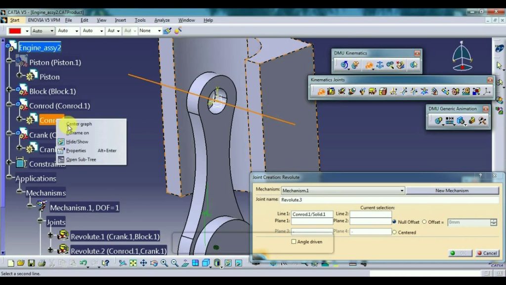 DMU运动仿真器2(KIN)定义了使用各种关节类型或通过机械装配约束自动生成各种尺寸的数字模型的机制。可以通过基于鼠标的操作轻松地模拟机械运动,以验证机械。检查干扰并计算最小距离来分析机械运动。它生成运动部件的轨迹或扫掠体,以驱动进一步的设计。DMU产品集成来进行组合仿真。