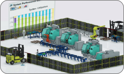 定义、验证和评估产线的资源布局和生产能力,分析物流瓶颈并优化产能