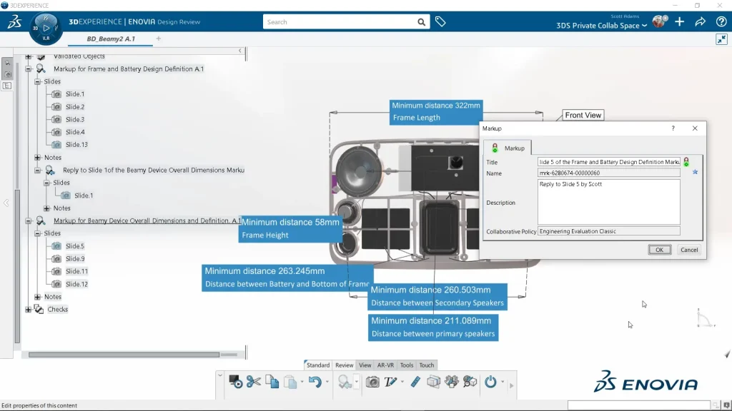 ENOVIA 3DEXPERIENCE 数字样机审查工程师 (DRN-OC) 角色通过在子系统或组件级别启用协作式数字样机审查,实现虚拟原型上的实时问题解决。