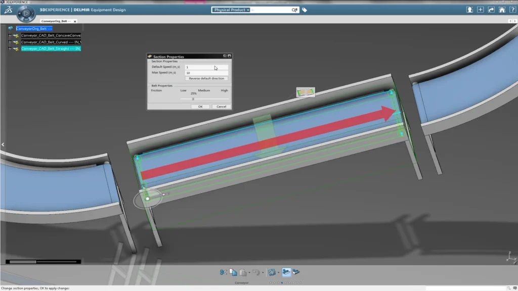 预定义的资源类型(如输送机、机器人、夹具和工具设备)可用于对资源进行分类和组织。用户可以创建代表工厂、生产线、工作站或其他资源类型的组织树,在 3DEXPERIENCE® 目录中找到资源,然后将它们复制到组织树中。使用模式可以快速创建具有正确对齐资源的布局。