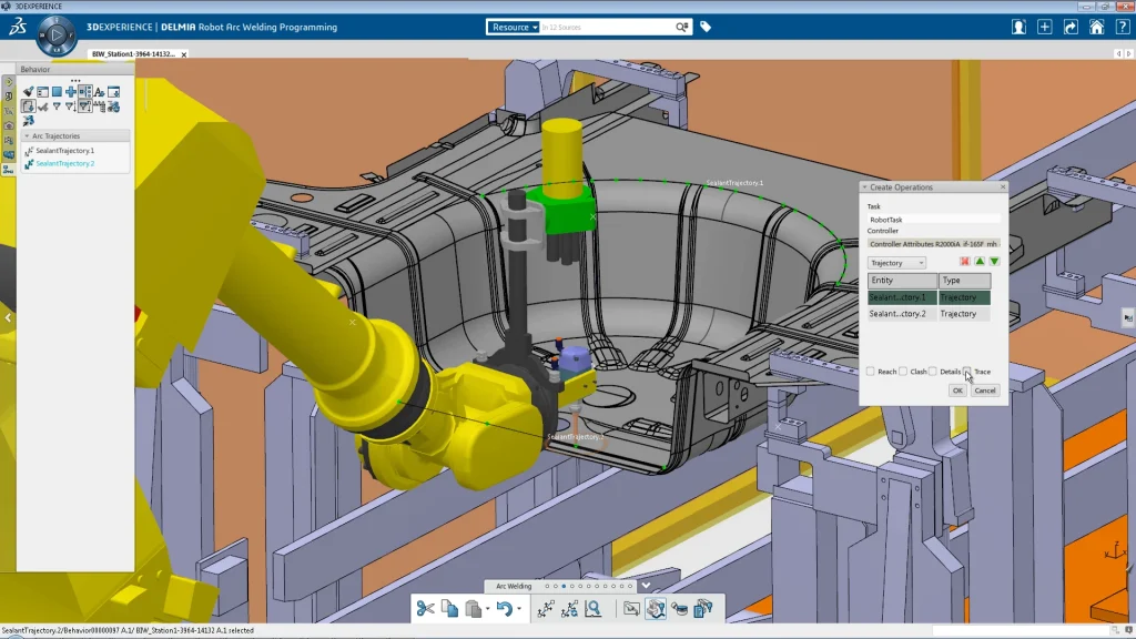 DELMIA 3DEXPERIENCE Fabrication Robot Programmer 提供了一个交互式 3D 环境,机器人程序员可以在其中创建、模拟和验证整个机器人工作单元,用于电弧焊接、激光切割、水射流切割或任何轨迹基于零件交叉点的机器人应用。
