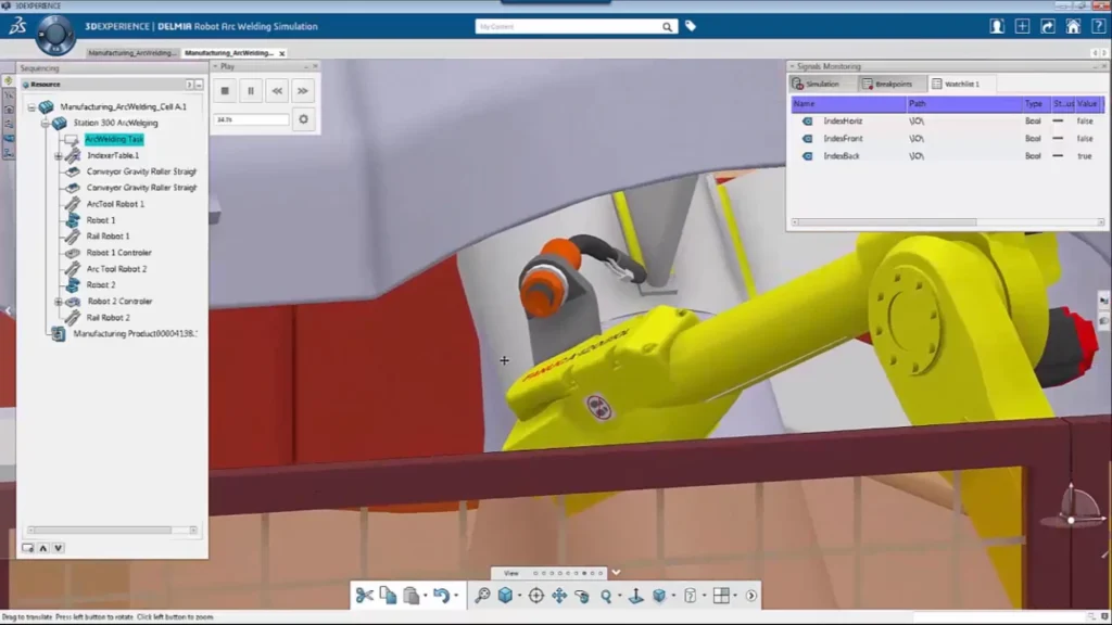 机器人程序员可以定位资源,模拟机器人和定位器,创建机器人轨迹,并在机器人和其他设备之间创建完整的工作单元序列。他们可以在机器人弧焊工艺和设置交付到车间之前定义、验证和优化它们。
