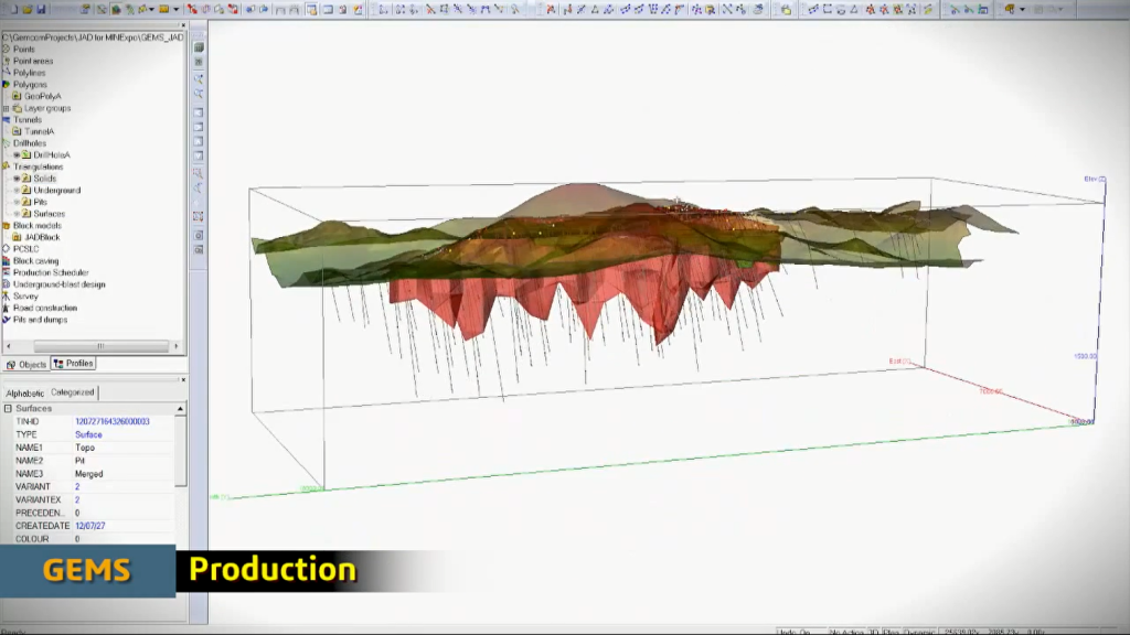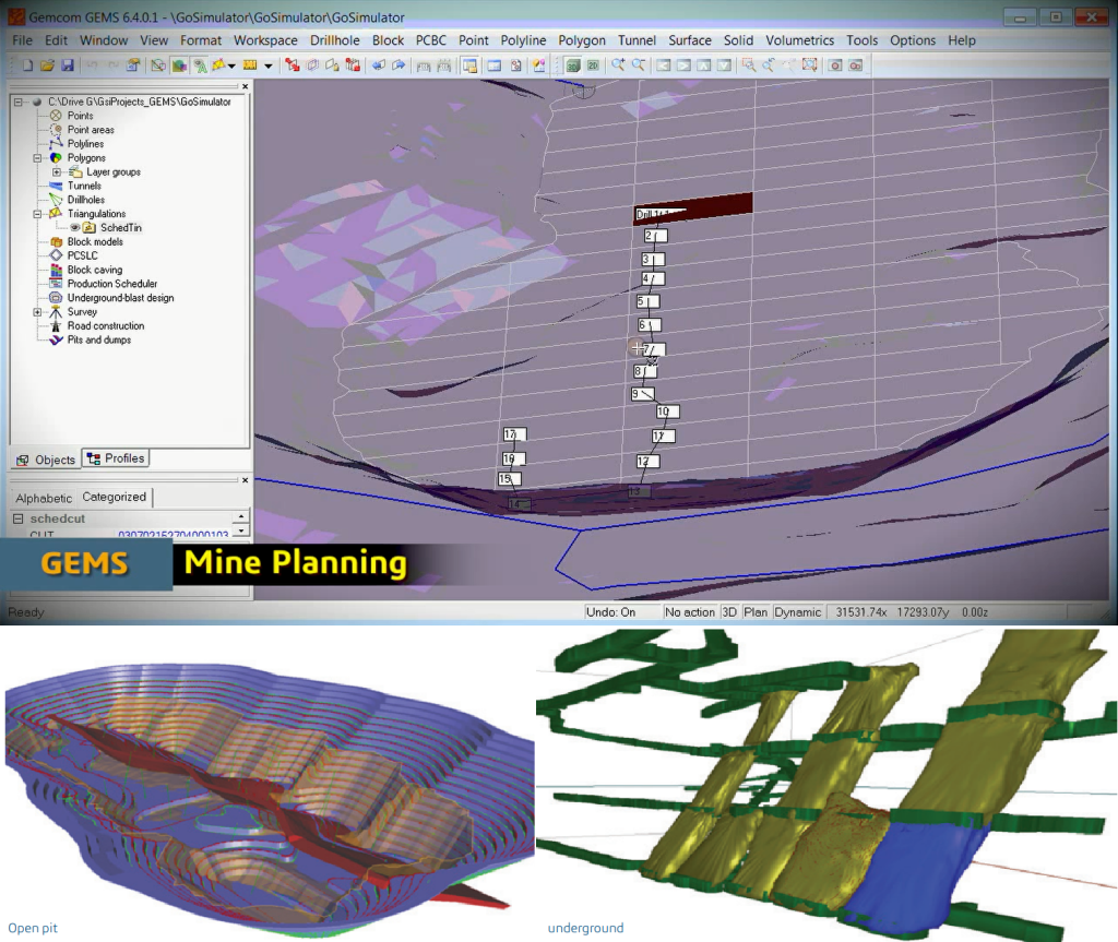 该矿山规划和设计特点可在GEMS支持露天和地下作业。通过监测系统数据库将关键进程联系在一起,可以根据不断变化的资料更准确地更新采矿计划。