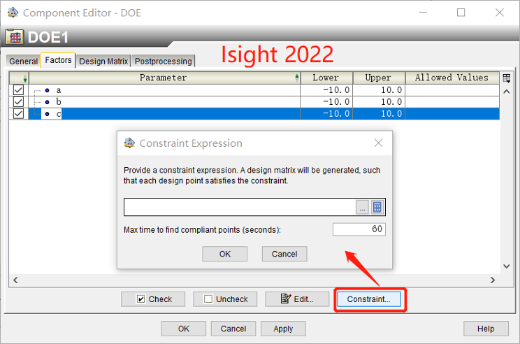 现在,Sobol Sequence技术还允许用户选择性地对因子施加约束,约束可以是一个或多个因子的函数。