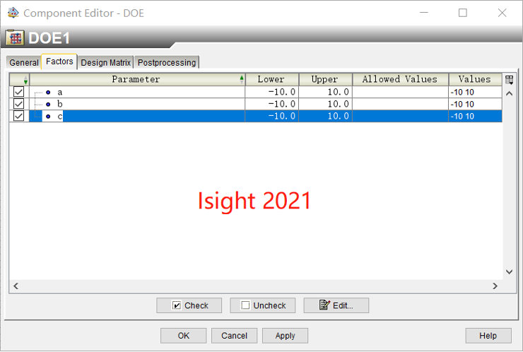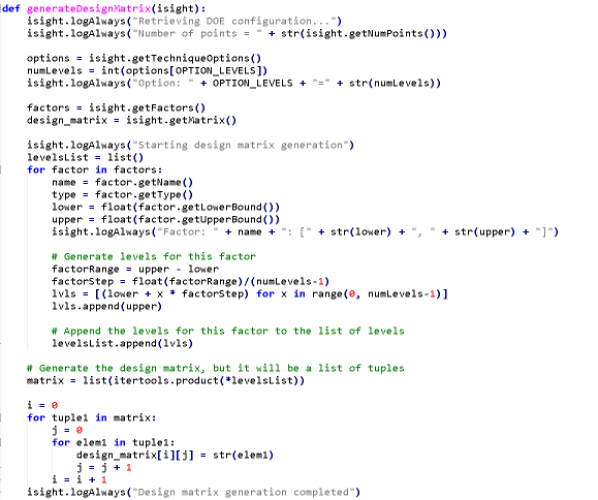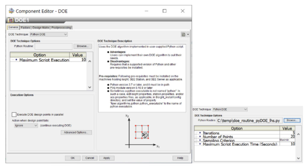Python DOE技术允许用户在Isight之外使用Python定义自己的DOE算法,并且仍然可以使用Isight的集成和自动化功能。设计矩阵可以由用户提供的算法生成,并由Isight执行DOE研究(自动评估所有设计点)并分析结果。