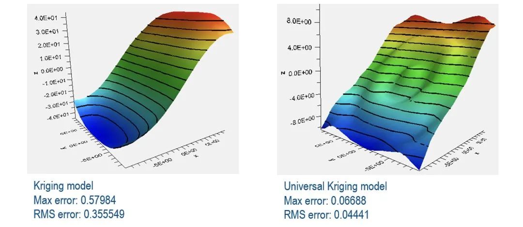 使用Universal Kriging技术构建的近似模型明显优于Kriging技术。