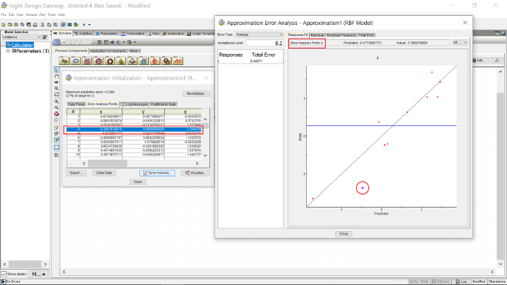 这种增强引入了误差分析图(响应拟合和残差)和误差分析表之间的关联性。当鼠标悬停在图形中的一个设计点上时,相应的错误分析点(行号)以及该设计点的预测值和实际值将显示在图形面板上方。在图中选择一个设计点时,误差分析表中的相关行也会自动被选择。相应的,在误差分析表中选择某一行时,图中相应的设计点也会自动突出显示。