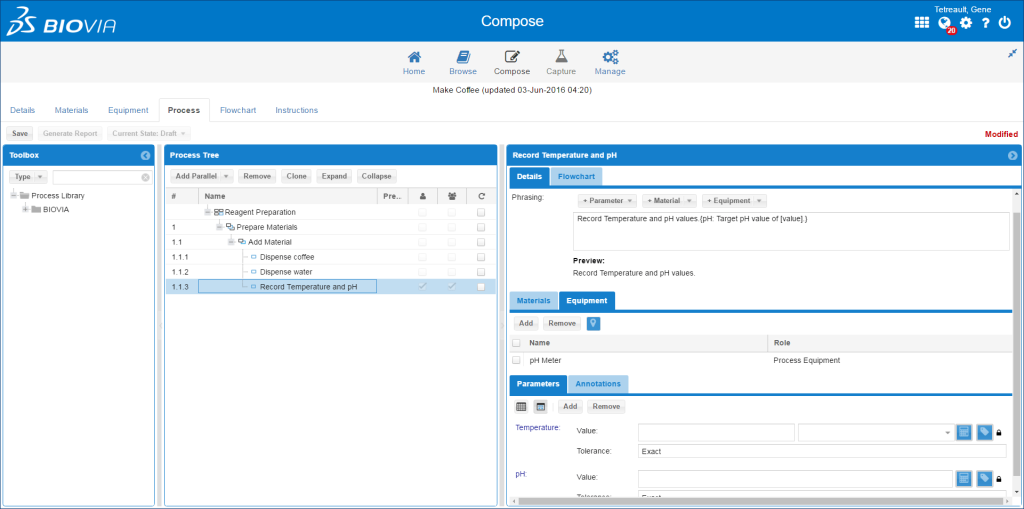 BIOVIA Compose可让您根据行业标准快速构建过程和方法,以便在过程中使用这些方法,快速扩大产品规模和加速商业化过程。