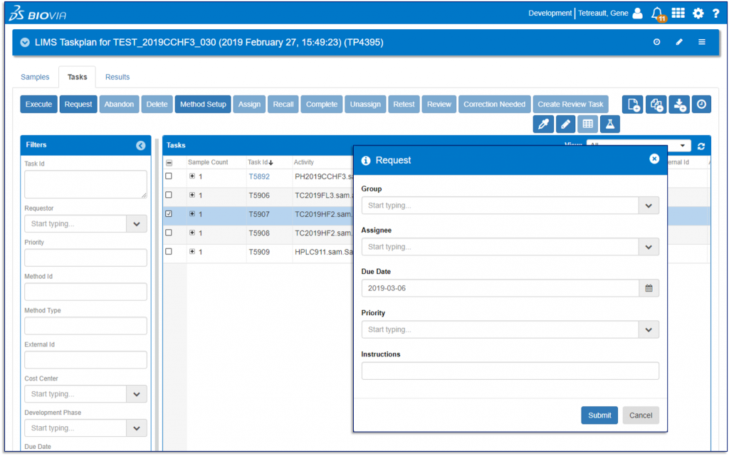 BIOVIA Task Plan使科学家能够轻松地计划、请求、分配和执行实验室过程。灵活的活动模板使用户能够配置和管理映射到关键实验室工作流程的活动,以进行分析、机械测试、化学合成过程、生物学测试、蛋白质纯化过程、聚合、配方优化等。诸如批准、通知和发放之类的业务流程都可根据组织需求进行定义: