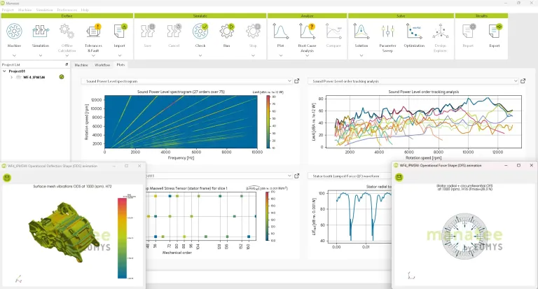 它是业内专用于计算和分析电机所引起的电磁噪声和振动的软件,包括根因分析和噪声抑制工具包。它内嵌丰富的磁性和控制e-NVH解决方案经验(斜置、凹槽、磁体整形、PWM…),可以帮助产品降噪高达40dB。