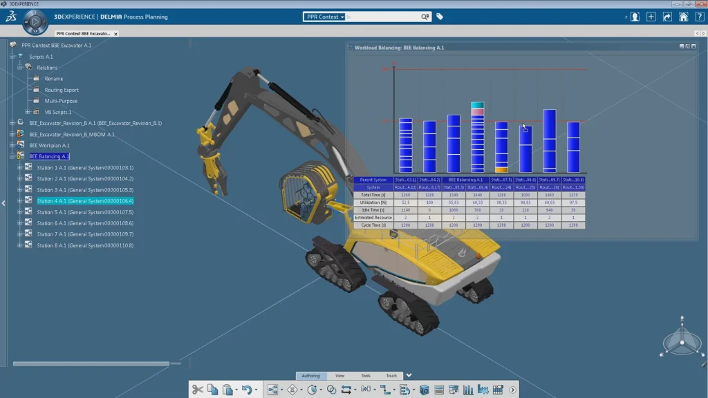 在一个应用程序中快速定义所有工艺工程数据,包括制造项目(如制造物料清单)、工艺路线管理和资源分配。用户可以通过组织必要的沉浸式面板来自定义工作界面,以编辑属性、导航关系、分配管理和 3D 显示。