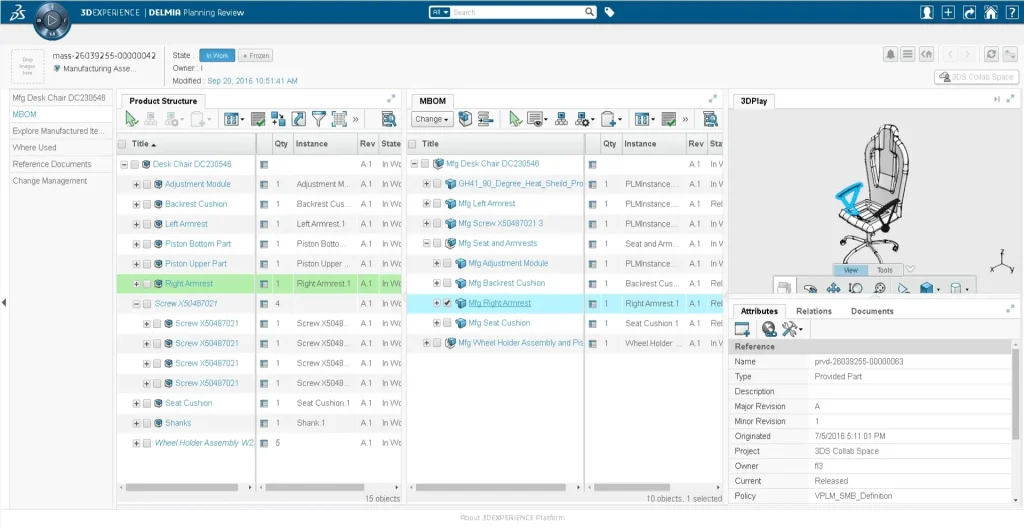 DELMIA 3DEXPERIENCE运营工程审阅者 (PMR)角色使任何用户能够在轻量级 Web 界面中轻松访问和审查流程和服务工程数据,例如制造和服务项目、流程计划、相关工作说明和物理资源结构。
