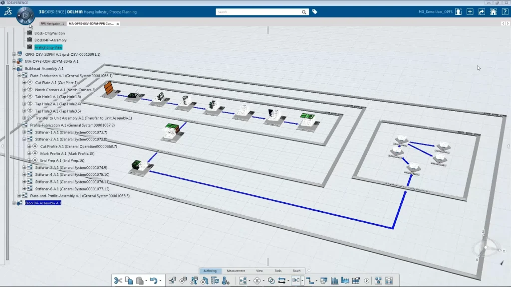 使船体结构、暖通空调、管道、电气和所有其他造船专业的工艺工程师能够编写工艺计划(例如板材和型材切割、焊接、舾装和住宿的装配操作等)、分配资源并平衡整个制造系统的运营。