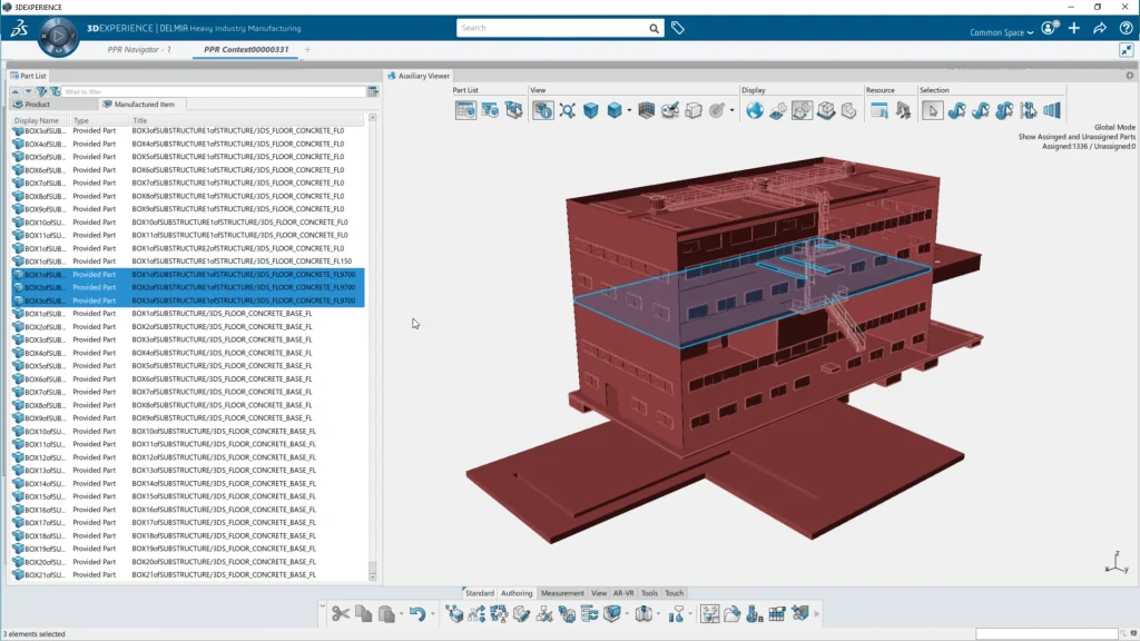 透明度和自动化是通过 3D 独特语言实现协作的关键,两者都有助于减少在生产过程中后期发现的错误数量。例如,装配顺序问题(错误的操作顺序)、特定资源的过度使用、制造项目(零件)的错误分配、重要设备(例如重型起重机)同时使用冲突等。这有助于加速业务流程和决策,避免部门之间的循环,并缩短投产时间。